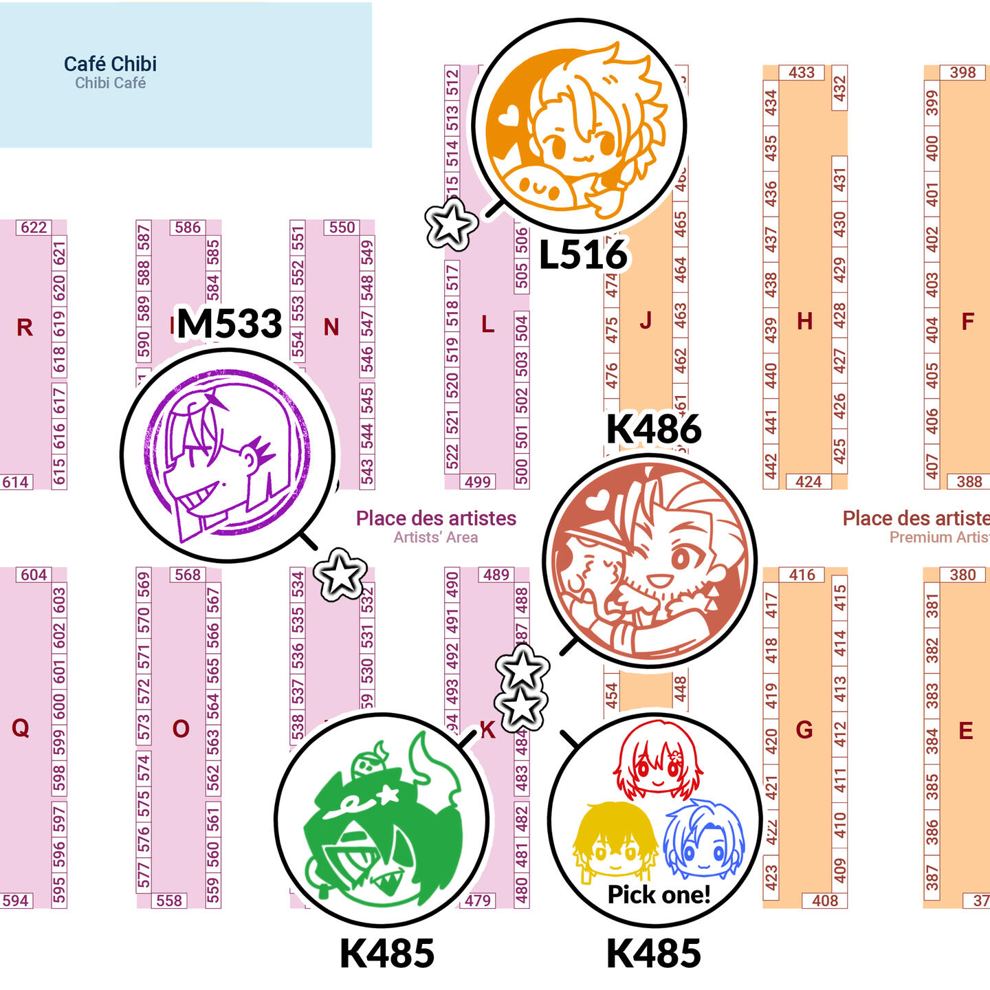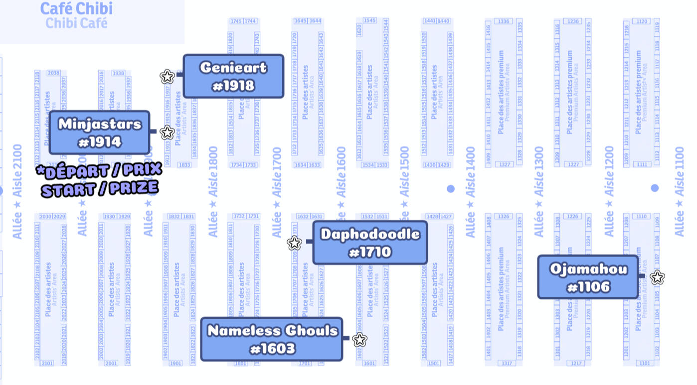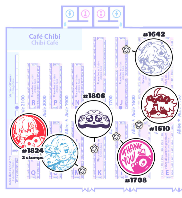 Participation gratuite. Faire un petit défi pour une étampe!--------------------Start, Prize Pickup @ Artists' Area #1914Collect all 5 stamps for a sticker sheet and postcard!