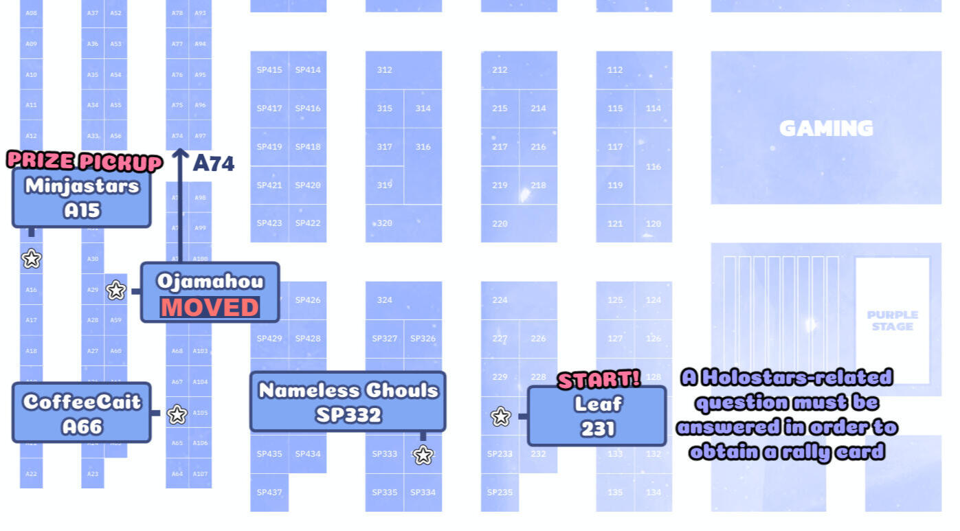 (Examples: follow the artist or Holostars talent, give a view to a specific Holostars video, answer a question, complete a challenge, etc.)Feel free to share your pictures using the #hlstotkthn2024 tag on Twitter!Maps: