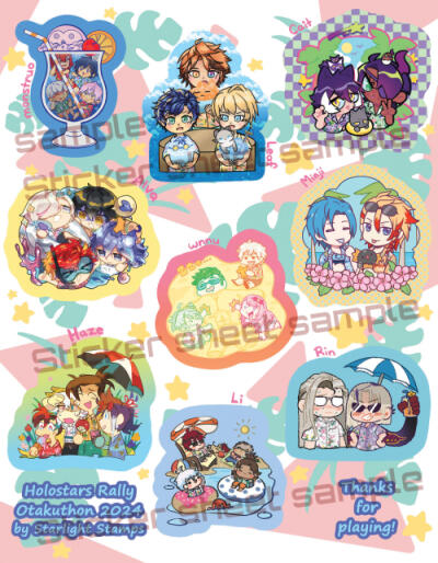 This rally is free to participate, and get a sticker sheet prize!The amount of prizes are limited as this rally will be using leftover sticker sheets from our Otakuthon 2024 rally. There will be participation from most artists involved, with permission from those who are unable to attend!You may be asked to do some simple tasks for the stamps